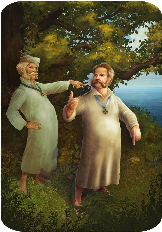 Вспомнил помещик, что есть у него поблизости четыре генерала знакомых; думает: «Что это я всё гранпасьянс да гранпасьянс раскладываю! Попробую-ко я с генералами впятером пульку-другую сыграть!»