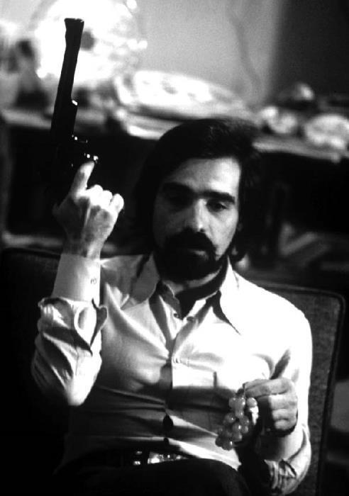 1.2 – Режиссер Мартин Скорсезе держит пистолет на съемочной площадке фильма «Таксист» © Стив Шапиро, Corbis.