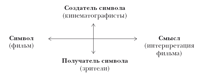 Схема 1.2 наглядно показывает структуру книги – с кинематографистами во главе, процессом создания смысла посередине и кинозрителями в конце.