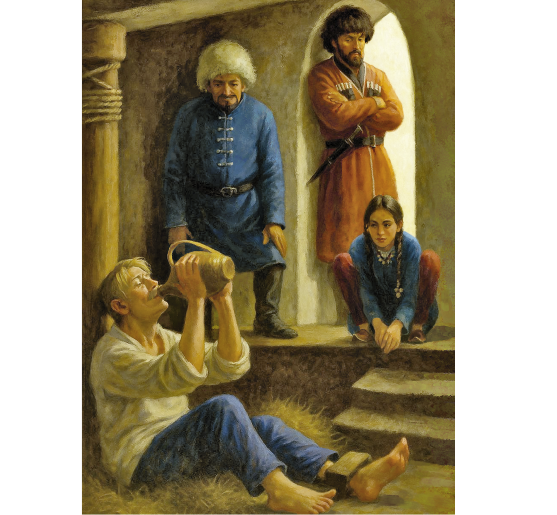 – Тебя, – говорит, – взял Кази-Мугамед, – сам показывает на красного татарина, – и отдал тебя Абдул-Мурату, – показывает на черноватого. – Абдул-Мурат теперь твой хозяин. – Жилин молчит.