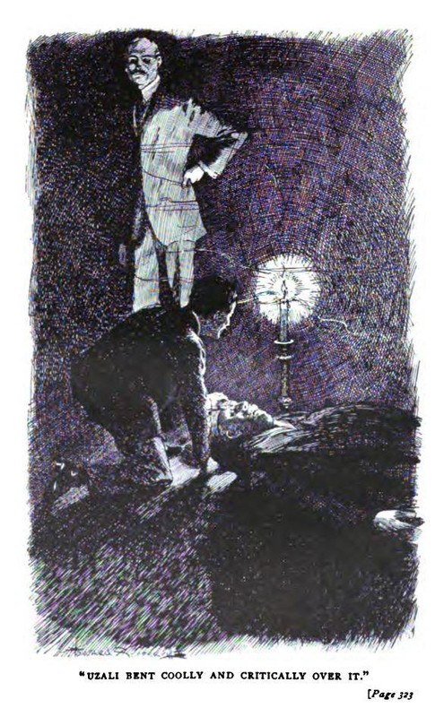 Russell obeyed without comment. He felt he was entirely in the hands of his companion. Uzali proceeded to shut off the light and also to open one of the windows that led to the lawn. He placed a screen across the fire and nodded with the air of a man who is satisfied with his plans.