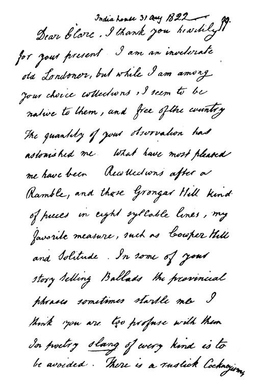 Holograph Letter To John Clare The Peasant Poet,