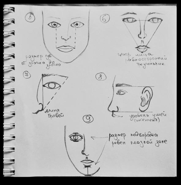 6. При соединении точек внешних углов глаз и средины края нижней губы должен получиться равносторонний треугольник.