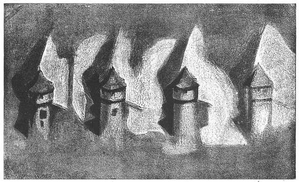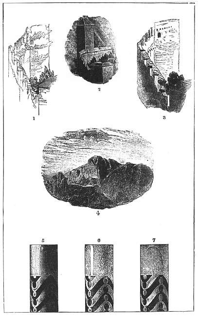 77 This etching, like that of the Bolton rocks, is prepared for future mezzo-tint, and looks harsh in its present state; but will mark all the more clearly several points of structure in question. The diamond-shaped rock, however, (M, in the reference figure,) is not so conspicuous here as it will be when the plate is finished, being relieved in light from the mass behind, as also the faint distant crests in dark from the sky.