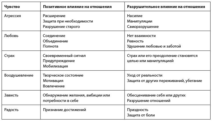 Вот простая практика, которую каждый может сделать в любой удобный момент. В первый столбец таблицы нужно выписывать чувства (особенно интересны те, которые оцениваются негативно), во второй столбец — их результативное влияние, в третий — нерезультативное или разрушительное.