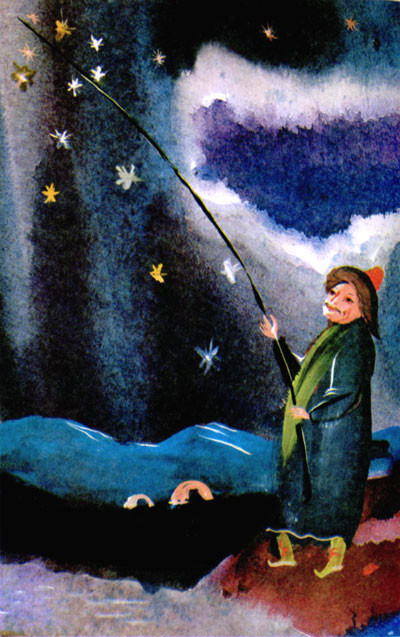 — Зашил, толкуешь, небо? Но зашил ты его худо — видишь, с утра сквозь дыру моросит дождь. Топай от меня на своих дырявых унтах. Сначала, хвастун, унты свои зашей, а потом берись за починку вечного неба!