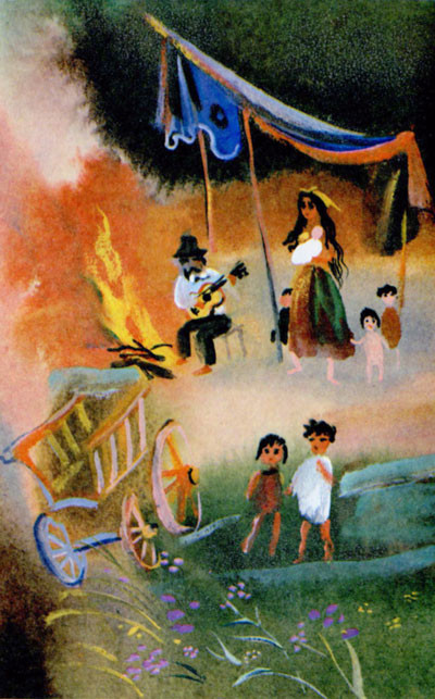 На краю деревни маленька избушка стояла, цыган в нее зашел. Видит: на печке старик со старухой сидят, от страха дрожат, скукурючились. Цыган спрашиват: