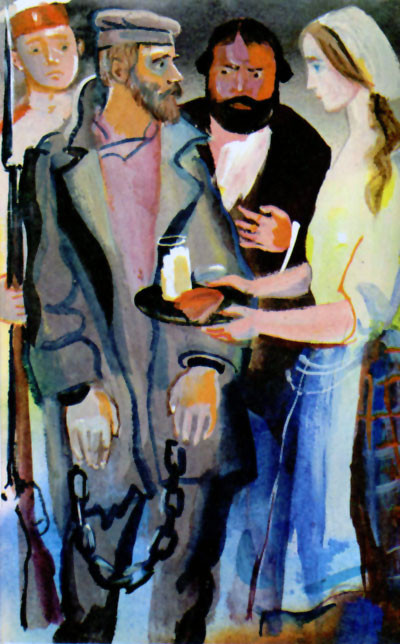 Цыган виду не подает, держится так это. Тут у бабки на печке миска с творогом стояла. Он забират в кулак этот творог и давай тоже жать. Жиманул — вода сквозь пальцы побежала, сыворотка.