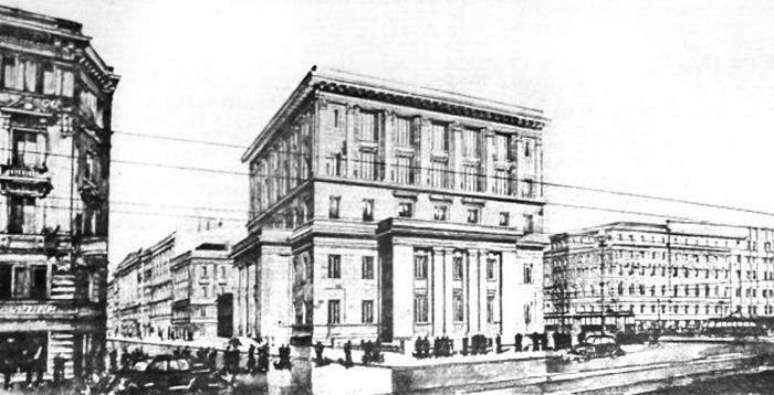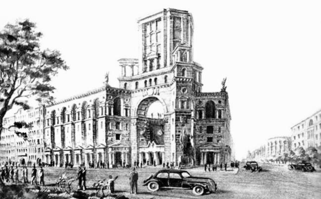 Окончательный проект, принятый к осуществлению, разработал в 1952 г. коллектив архитекторов в составе И.И. Фомина, Б.Н. Журавлева и В.В. Ганкевич.