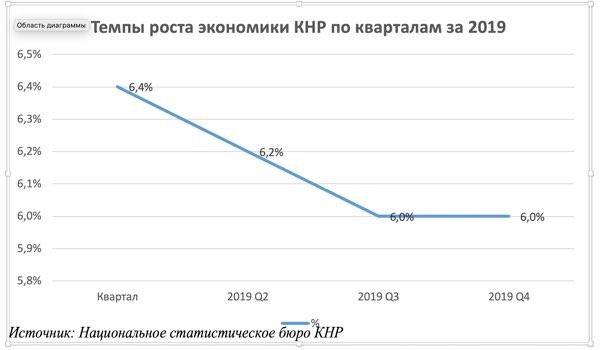 Официальный показатель роста на протяжении четырех кварталов 2019 г. плавно замедлялся — в первом квартале его темпы составили 6,4%, во втором — 6,2%, а в третьем и четвертом по — 6%, а по итогам всего года 6,1%.
