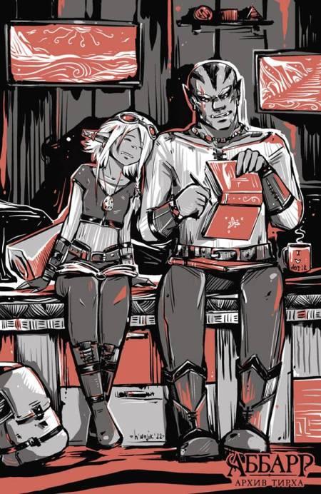 В то утро, когда пастух и его пёс вырвали добычу из когтей Мэй, Саад угостил путников сытным завтраком, предложил им помощь и отвёл единственную не занятую крохотную комнатку, которую обычно использовал как кабинет и место дневного перекура: бумаги разобрать, монеты пересчитать да камни отсмотреть. Не успел Клыкарь расспросить радушного хозяина о Тирха, как Ашри покачнулась и начала оседать. Грав подхватил элвинг и усадил на топчан.