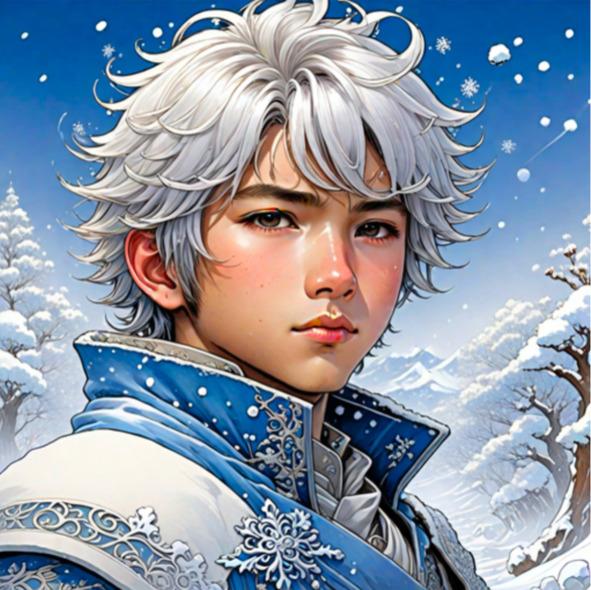 Мороз в красивой белой шубе и с белой бородой стоял и, не спеша, внимательно рассматривал свои снежные владения. Вроде бы всё было хорошо. Рядом с ним стоял его внук Снежик.