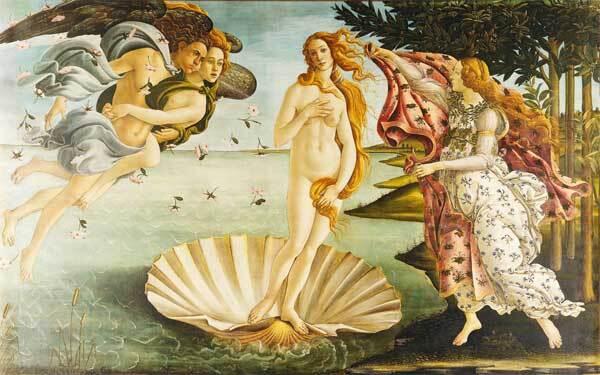 «Рождение Венеры»… Первое и главное ощущение, которое испытываешь в Уффици, – светозарность картины. Будто сама целомудренная душа Сандро Боттичелли раскрывается перед вами во всей своей прекрасной сути. Хочется мгновенно забыть все мудреные толкования и рафинированные рассуждения, которые связаны с этим предельно ясным, чистым и открытым полотном. Приятие красоты, радость бытия, слияние человека и природы – могучий и чарующий лейтмотив этого тончайшего по композиции, форме, линиям, музыкальному ритму произведения флорентийского мастера. Свежесть мировидения автора читается в каждой ноте этой прелестной симфонии созвучий моря, неба, ветра, простора и красоты. «Рождение Венеры» – идеальное по чувству меры, такту и одновременно монументальному величественному решению сверхзадачи полотно, создавшее, как и «Весна», навечно «мир Боттичелли».