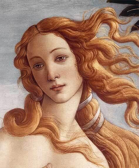 Сандро Боттичелли. Рождение Венеры 1482–1486. Галерея Уффици, Флоренция. Фрагмент