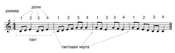 Что же такое такт и для чего он нужен? Это кусочек произведения, на которое оно разбито, обозначаеться вертикальной чертой на нотном стане: