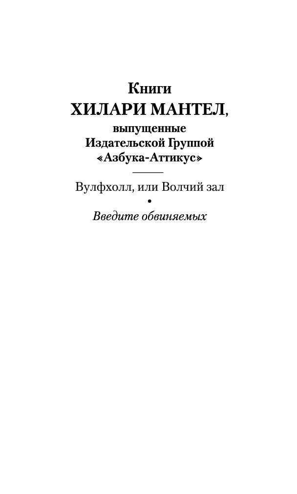 Введите обвиняемых : роман / Хилари Мантел ; пер. с англ. Е. Доброхотовой-Майковой, М. Клеветенко. – М. : Иностранка, Азбука-Аттикус, 2020. – (Большой роман).