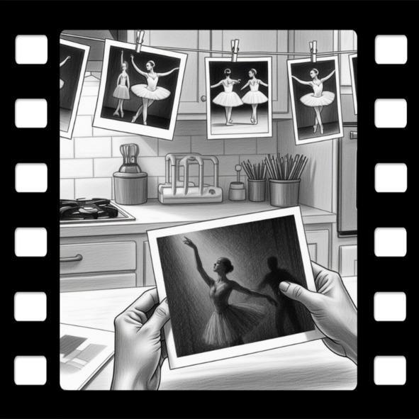 Теоретически я понимал, что при съемке на плёночную камеру возможно всякое: двойная экспозиция (когда два кадра как бы ложатся один на другой), бракованная кассета с плёнкой, какой-то неведомый мне световой эффект, да мало ли, что там может произойти. На практике же, я никогда не сталкивался ни с чем подобным. Более того, этот мой «брак» в виде тени, вёл себя на фотографиях на удивление активно — если расставить фотографии в хронологическом порядке, то получалось, что тень медленно, но вполне целенаправленно двигалась от кулис к балерине, танцующей в центре сцены, а потом просто исчезла.