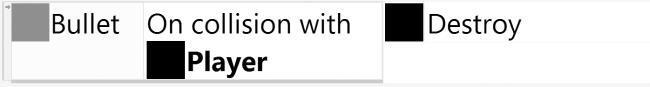 Логика поведений в Constuct. Слева – условие (пуля коснулась игрока), справа – событие (игрок уничтожен)