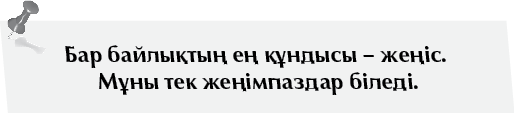 Негізінде, жеңіске жету қиын емес, сол жеңістің тұғырында тұратыныңа сену және сол үшін еңбек ету қиын. Есіңде болсын, араласатын ортаның да ықпалы зор.