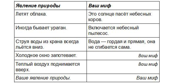 ☺Задание. Попробуйте сочинить миф. Для этого надо придумать объяснение природному явлению через человека или животное. Например: