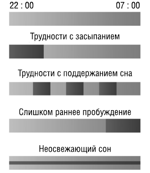 Напомним определение здорового сна: вечером в течение 15 минут после укладывания в постель человек засыпает, ночь спит без пробуждений или суммарно пробуждения длятся не более 15 минут (например, поход в туалет), утром в течение 15 минут включается в повседневную деятельность, днём чувствует себя бодро и его не клонит в сон.