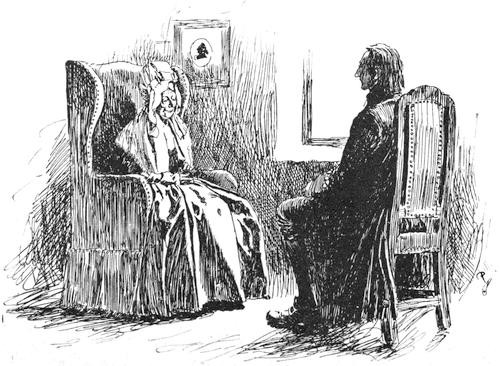 "Hist!" said the widow to him, in a half-tone, opening a narrow slit in the curtain. "What do you want, David?"