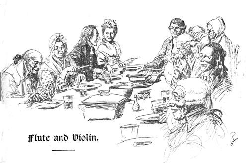 "I suppose he'll keep on playing those same old tunes as long as there is a thimbleful of wind in him: I wish he'd learn some new ones," said the hag, taking her cold pipe from her cold lips, and turning her eyes towards her companion with a look of some impatience.