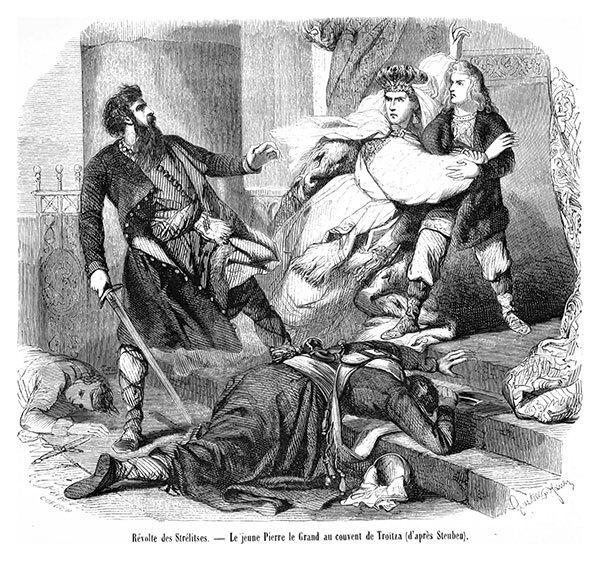 Наказание некоторых стрелецких полковников совершилось в первые дни царствования юного Петра. Страсти разгорелись. Произошло убийство нескольких полковников «любимым» тогда способом: несчастных втаскивали на башни и оттуда сбрасывали на землю. Главный начальник стрелецкого войска, князь Долгорукий, не был в состоянии успокоить мятежников. В такое время орудие, которым до того располагало правительство для сохранения тишины и порядка, легко могло обратиться против самой власти. Сила была в руках войска. От него зависело, кого признать настоящим правительством. Для лиц, недовольных избранием Петра в цари, стрельцы могли сделаться лучшими союзниками.