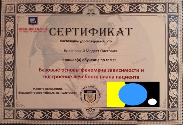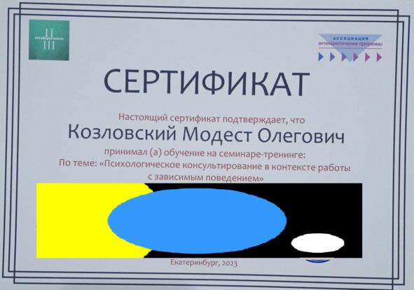 Высшее образование с квалификацией «Специалист по социальной работе» и на его базе два диплома о переквалификациях, с дополнительно полученными регалиями «педагог-психолог» и «менеджер».