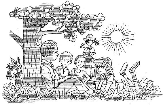 – Вижу, вижу. – Инспектор одобрительно взглянул на корзинки с едой. – Я очень надеялся вас тут увидеть. Что ж, спасибо, мы с Хилари с радостью присоединимся к пиршеству. Ну, дорогие юные сыщики, не хотите ли вы доложить о каком-нибудь преступлении, требующем немедленного расследования? Над чем сейчас работаете?