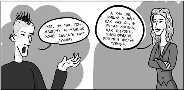 Сверхидея в этом случае спрятана: на первом плане действия и реплики персонажей. При этом если зритель сопереживает герою, то ему ВМЕСТЕ С НИМ БУДЕТ НЕПРИЯТНО наступить на жвачку. То есть нужно все время подстраивать все действия и ситуации так, чтобы они ненавязчиво и неявно доносили нужный вам посыл.