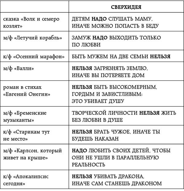 Например, у вас есть сверхидея: «Если у тебя в жизни все плохо, надо быть послушной, трудолюбивой и жизнерадостной, не роптать на судьбу, и муки твои будут вознаграждены: на тебе женится принц». О ЧЕМ могут быть истории, которые эту сверхидею выразят?