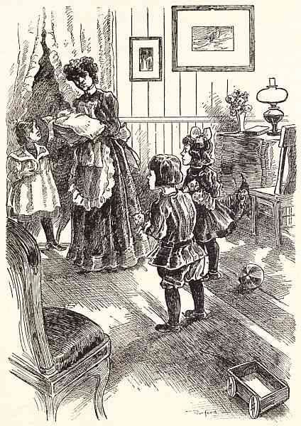 THE "next time" was quick in coming, which was not wonderful, considering there was a Brownie in the house. Otherwise the house was like most other houses, and the family like most other families. The children also: they were sometimes good, sometimes naughty, like other children; but, on the whole, they deserved to have the pleasure of a Brownie to play with them, as they declared he did—many and many a time.