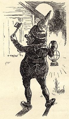 So there was not even a cricket singing in the silent house when Brownie put his head out of his coal-cellar door, which, to his surprise, he found open. Old Cook used to lock it every night, but the young Cook had left that key, and the kitchen and pantry keys too, all dangling in the lock, so that any thief might have got in, and wandered all over the house without being found out.