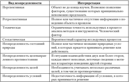 Таблица 1.1.Виды и источники неопределенности (Капустин В. Ф., 1993).