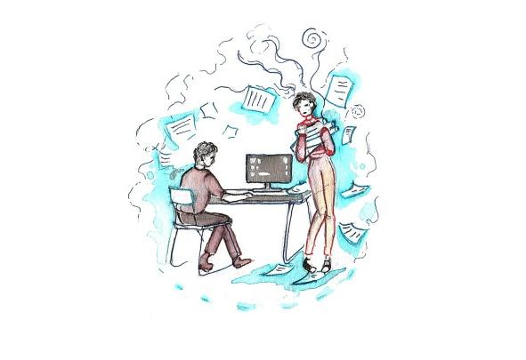 Катя нервно рылась в бумагах на своем столе, явно пытаясь что-то найти, производя при этом достаточно много шума и мешая другу, который устанавливал на ее компьютер новую программу тут же, за столом.