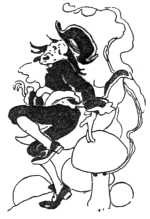 Hook sat down on one of the enormous forest mushrooms (in the Never-Never-Never Land mushrooms grow to a gigantic size) to deliberate about his mode of revenge. He was in the middle of a torrent of braggings and boastings when he felt his seat getting not only warm, but much too warm, and little wonder in that, for when he furiously leapt up he found that he had really been sitting on a chimney of the underground home which Peter had cleverly disguised. He realised at once that the Lost Boys must be living in safety down below.