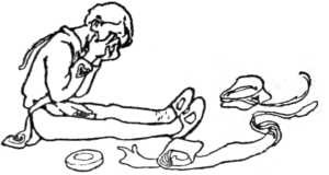 This seemed to Wendy a very funny address, but she was all sympathy when she heard that Peter had no mother. No wonder he was crying! But that was not the reason for Peter's tears; he was crying because he could not get his shadow to stick on. This made Wendy smile, and she emphatically declared that soap was no good. It must be sewn on.