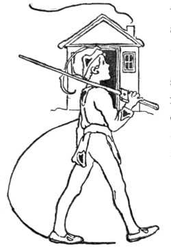 and the Boys fetched logs out of the forest, and a grate and a rug from the underground cave, and built a beautiful home for her out of wood, and tarpaulin, and make-believe. They made a chimney out of John's tall hat, which he had been Londony enough to bring with him, and they made a splendid knocker out of the sole of one of Tootles' boots.