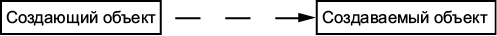 Пунктирная линия со стрелкой обозначает класс, который создает объекты другого класса. Стрелка направлена в сторону класса создаваемых объектов.
