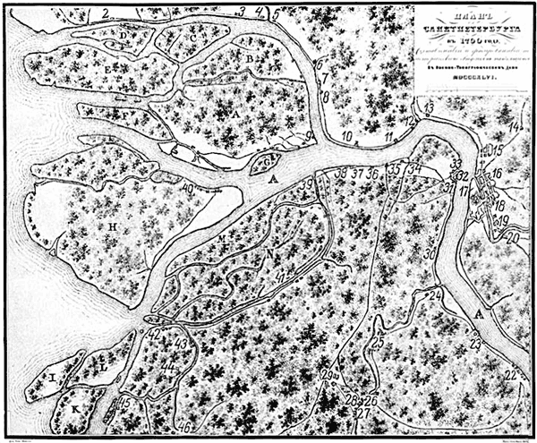 Местность Петербурга в 1700 г. (по атласу Цылова)