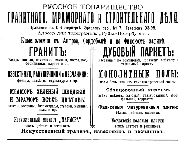 Историю использования природного камня как декоративного материала в архитектуре Петербурга можно условно разбить на семь периодов. Кратко охарактеризуем их ниже.