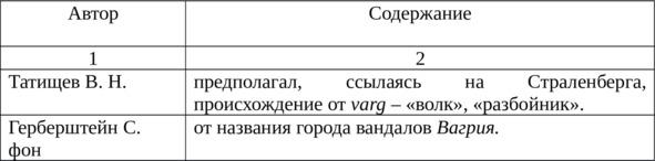 Как видно из табл. 1 версий много. Мы не будем их критиковать и опровергать. Приведем еще одну, которая, на наш взгляд, раскрывает этимологию происхождения этнонима варяги.