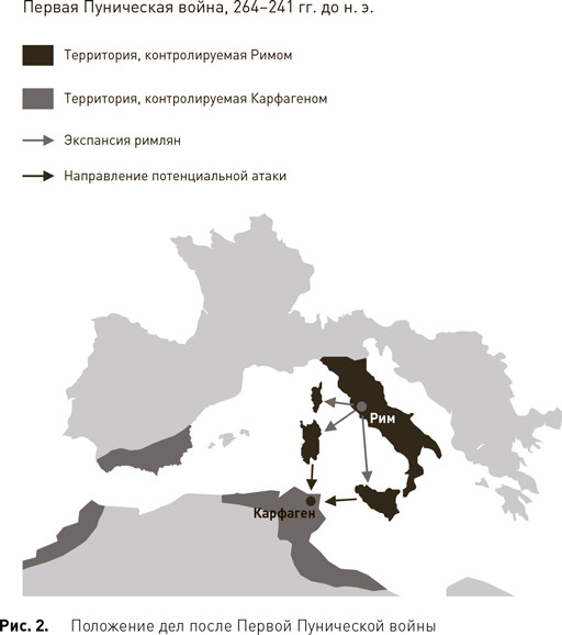 После долгого сопротивления Карфаген проиграл Риму Первую Пуническую войну (264–241 гг. до н. э.) (рис. 2). Центральное Средиземноморье перешло под полный контроль римлян, и в этой ситуации Карфаген боялся очередного нападения их флота, ведь Рим желал полной победы над этим городом-государством.