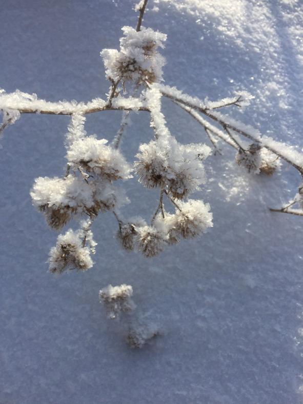 Прошлась легонько, едва коснувшись белилами, разведенными до бледно-бледно-голубого. Навесила слюдяной крошки на пожухлые травинки и торчащие тонкими соломинками стебли. Колючие шишки грустного чертополоха превратила в блестящие новогодние шарики. Не рановато?