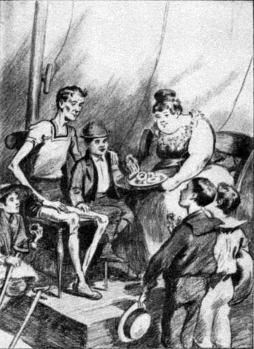 "You see we'd have to get a tent the first thing," said Toby, as he seated himself on the saw-horse as a sort of place of honor, and proceeded to give his companions the benefit of his experience in the circus line. "I s'pose we could get along without a fat woman, or a skeleton; but we'd have to have the tent anyway, so's folks couldn't look right in an' see the show for nothin'."