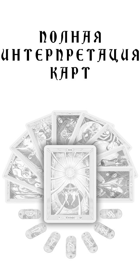 Язык бессознательного другой. Душа выражает себя через символы, образы, картины. Сны — яркий тому пример. Образы невозможно заменить словами. Слова со временем устаревают, теряют или меняют свое значение. Образы, и тем более символы, рассказывают человечеству об одном и том же уже тысячи лет. Вот почему научиться интуитивно чувствовать их значение не так уж сложно. Поначалу интерпретатору довольно трудно переводить смутные ощущения на ясный язык слов, чтобы донести послание карт до спрашивающего. Картина выражает гораздо больше, чем тысячи слов. Поэтому в книге мы объясняем символику каждой карты, а также предлагаем помощь в ее интерпретации в различных областях.
