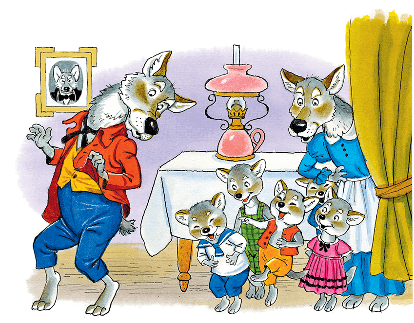 Прибежал волк домой и думает, что жена его пожалеет. А жена как увидела, что у него хвоста нет, как закричит: