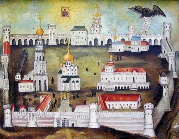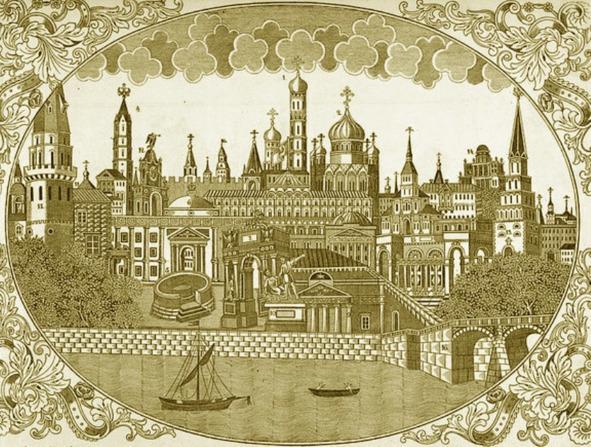 Среди многих знамён и копий, пушек да кораблей высился над ними двуглавый орёл. Грозный облик! Вот взмахнёт крыльями и полетит куда-нибудь к Воробьёвым горам, видимым по левую руку. Да не сошлись, верно, головы, куда направиться, — то ли к северу, то ли к югу…