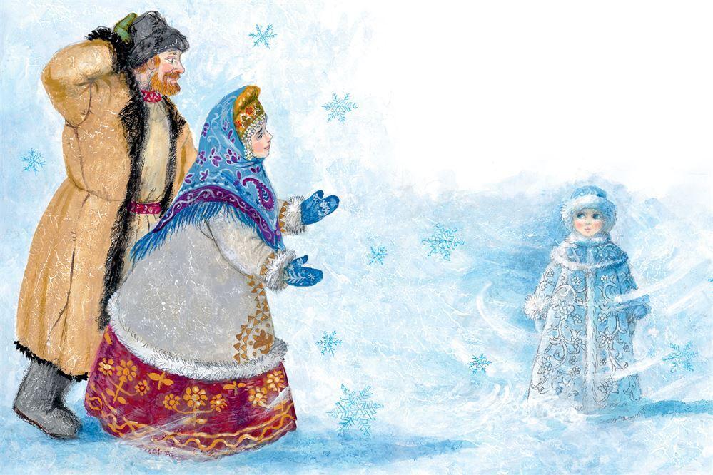– Пойдём, – согласилась Марья. – Но давай слепим не бабу, а доченьку – Снегурочку.